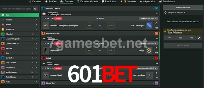 O 601Bet oferece uma grande seleção de opções de apostas em e-sports com probabilidades competitivas